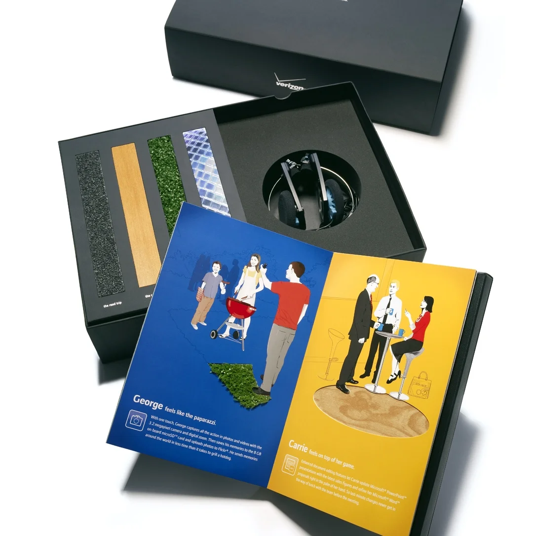 This launch kit went out to executives, stores and the press in order to create buzz around this innovative new feature. The centerpiece of the kit is a "Pat the Bunny" style book for executives explaining the features.